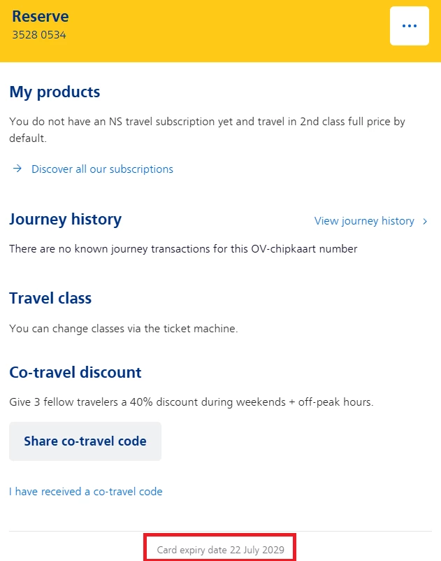 If an OV-chipcard is lost, then you need to block (and replace) the OV-chipcard. This can be done here. If you don't know the OV-chipcard number or the expiration date and you have a NS subscription on this OV-chipcard, then the Customer Service is able to help you retrieve the OV-chipcard number and expirationdate.