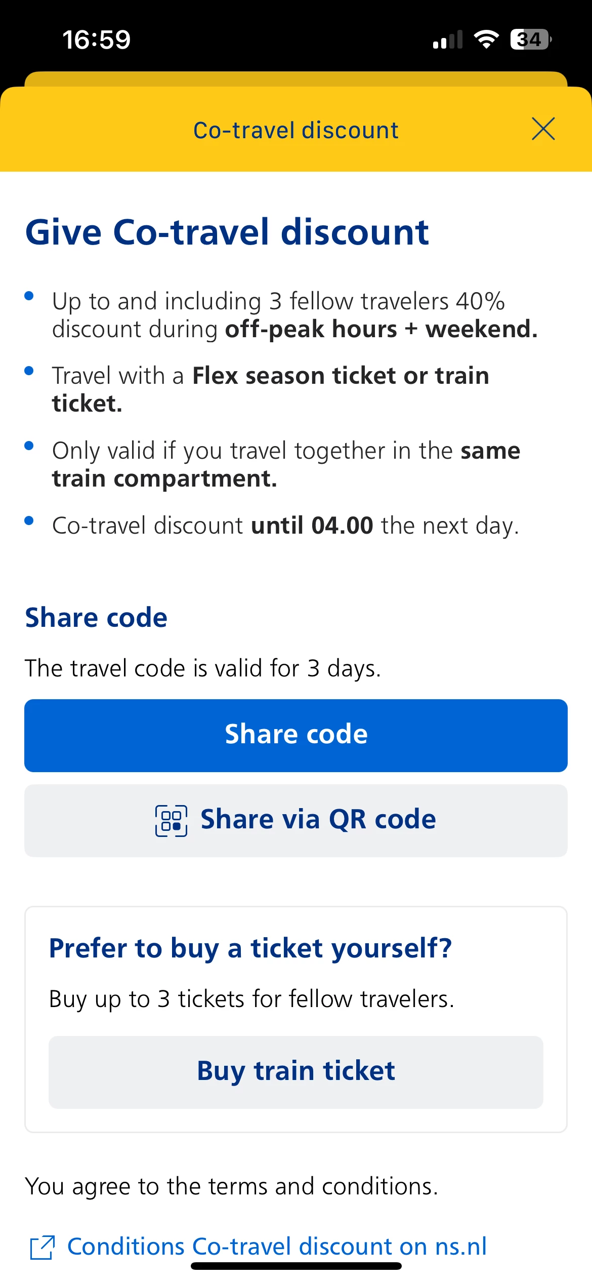 Discount from the NS Flex Dal Voordeel subscription can only be used by checking in and out with the personal OV-chipcard that is linked to the subscription. The fee for the travel, with the discount, will be placed on the next invoice. Here you can find more information about checking in/out. Here you can find more information about the NS Flex invoices. And here you can find more information about the NS Flex Dal Voordeel subscription. When you buy a regular e-ticket, a discount is not added.