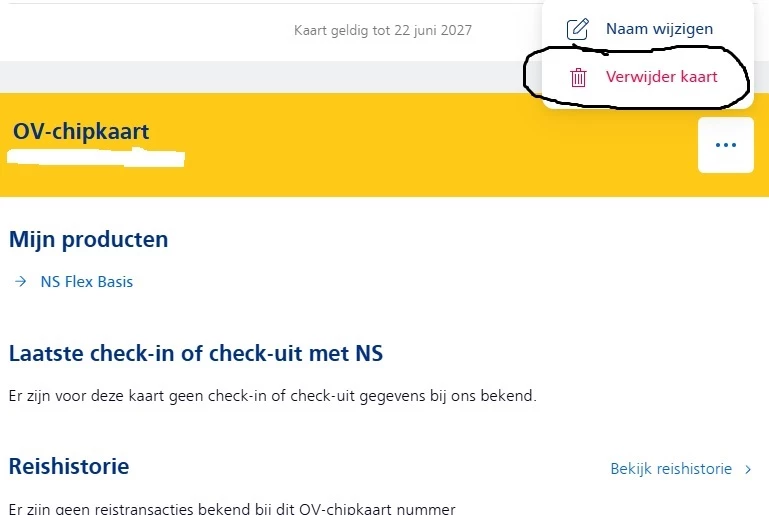 Hoe verwijdert ik oude nummer van ov pasje ?