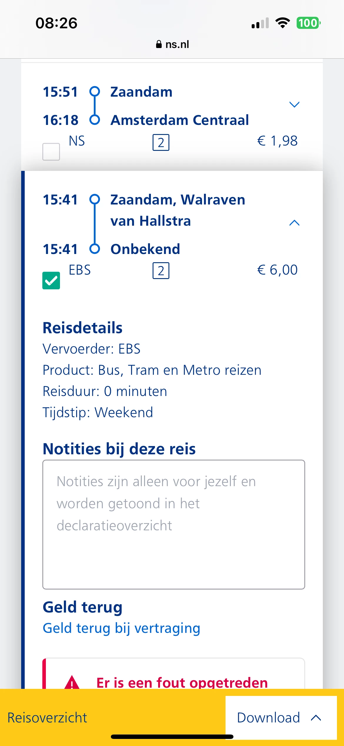 I checked out at Zaandam station as you can see 10min later I checked in there, so the 6€ is incorrect, it should be less.