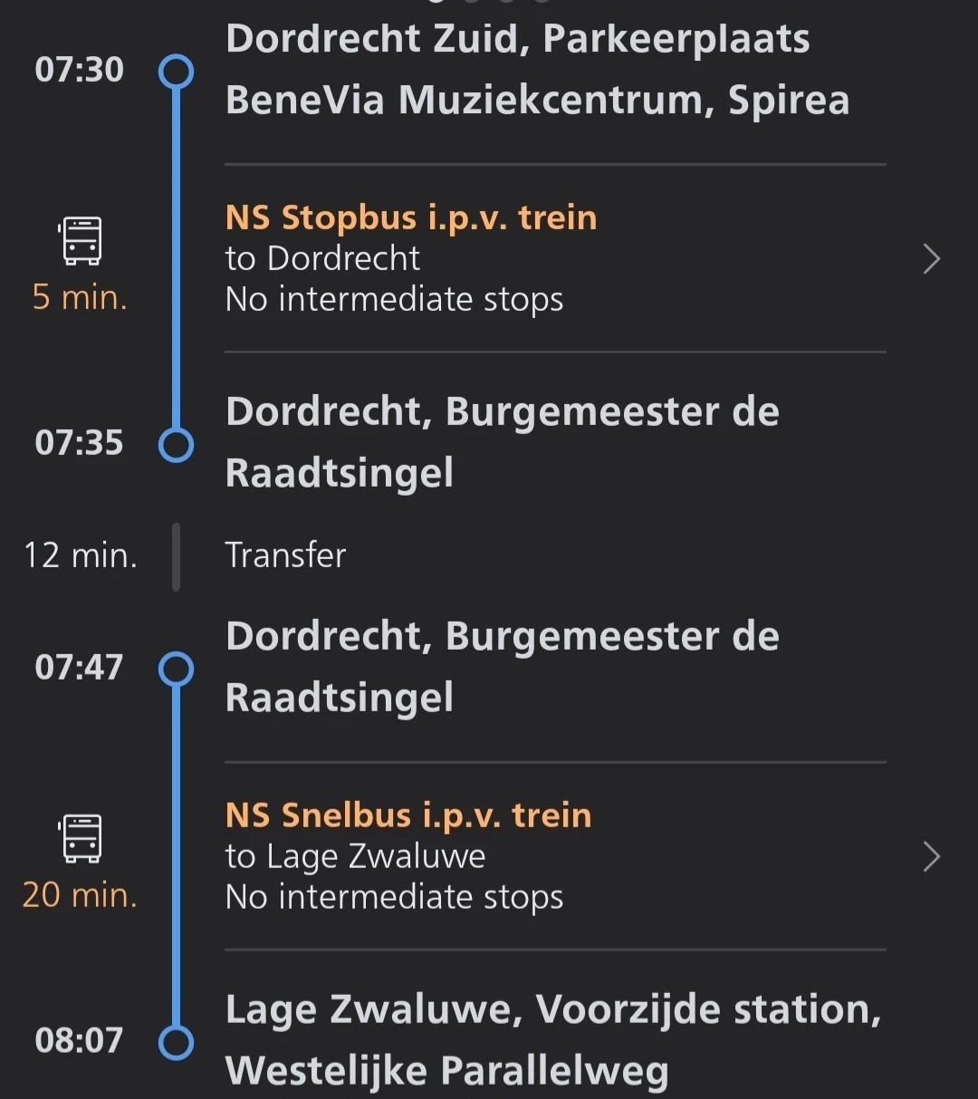 Nee, dat is zeker niet fijn voor de reiziger. Het is nog een bijzonder lange overstap van de ene bus naar de andere ook.